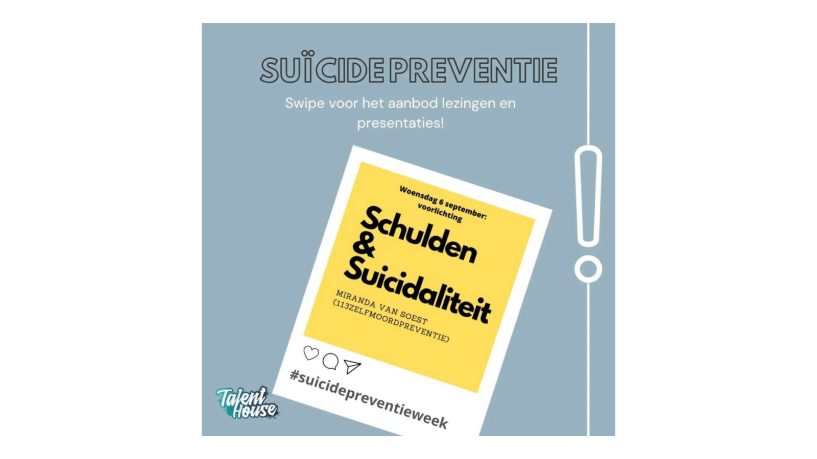 Collega’s konden ook een cursus suïcidepreventie volgen en om dit onderwerp te borgen is hiervoor een aandachtsfunctionaris aangesteld binnen de organisatie.