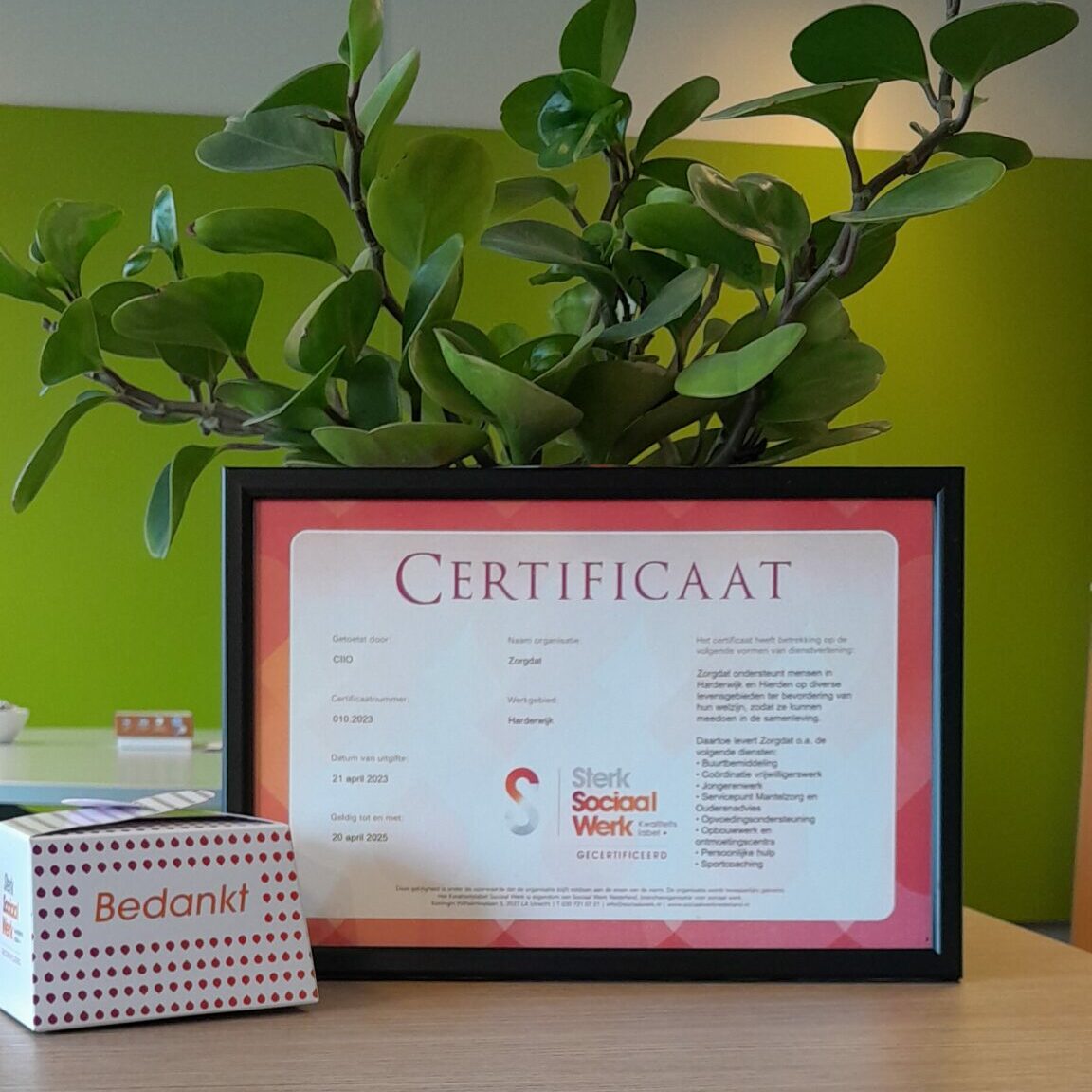 Het jaar is gestart met een her certificering van het kwaliteitslabel Sterk Sociaal Werk. Inmiddels is dit voor Zorgdat de derde certificering die we hebben behaald. Als sterke punten worden genoemd dat de medewerkers betrokken en vak-volwassen zijn met een heldere visie op aanpak. De organisatie heeft korte lijnen, zowel intern als extern. We zijn ondernemend en spelen in op kansen en actualiteit. Een resultaat waar we blij mee zijn. Het biedt een goede basis om verder mee door te gaan en te ontwikkelen.