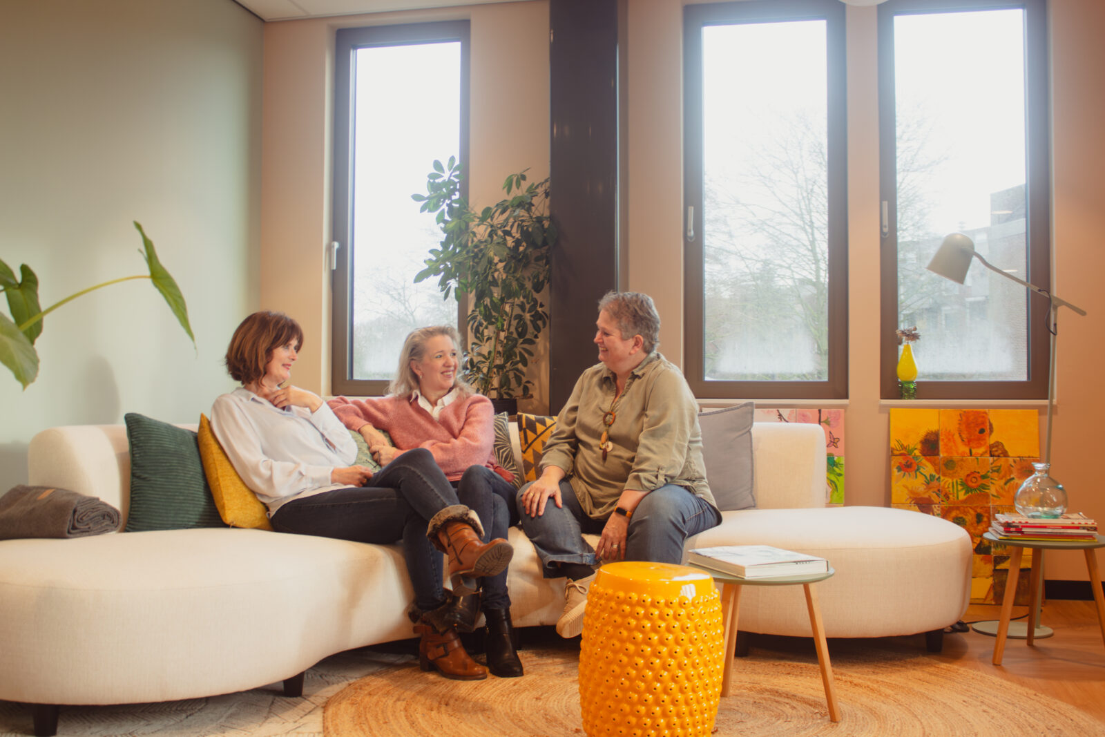 Foto: welzijnscoaches in huiskamer in MFC De Roef